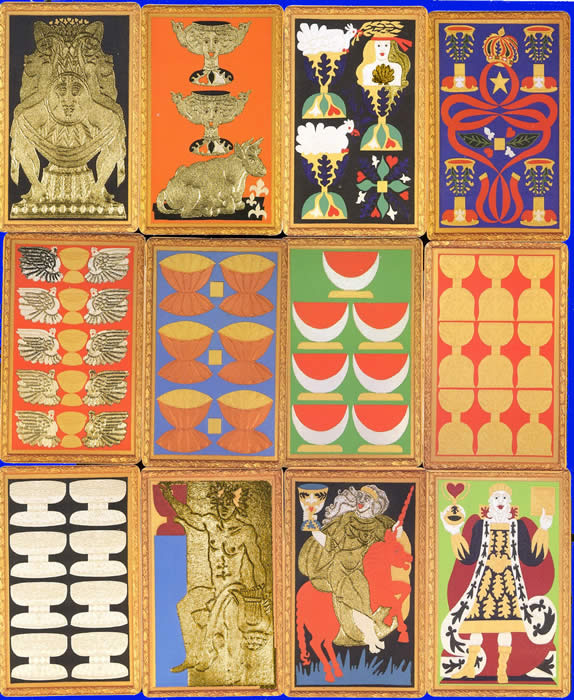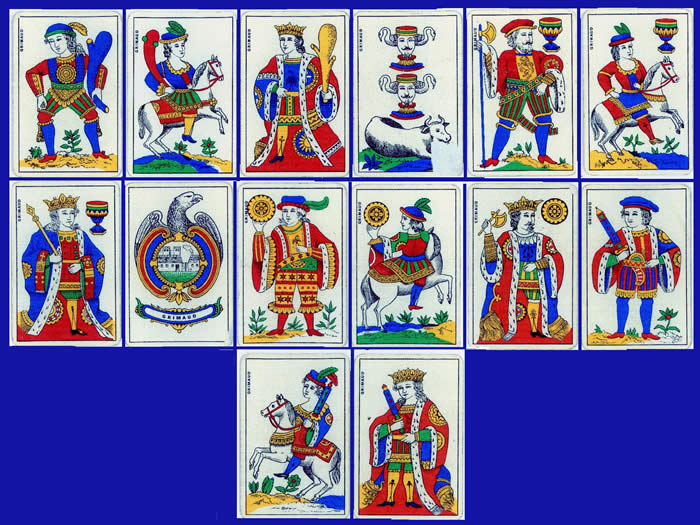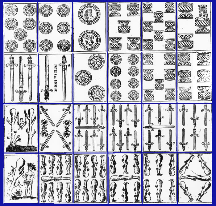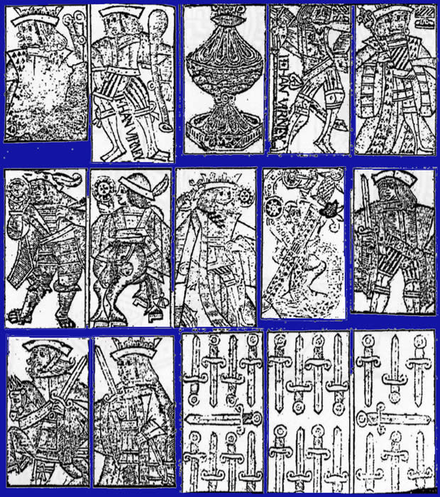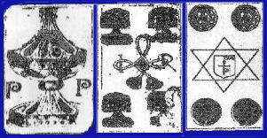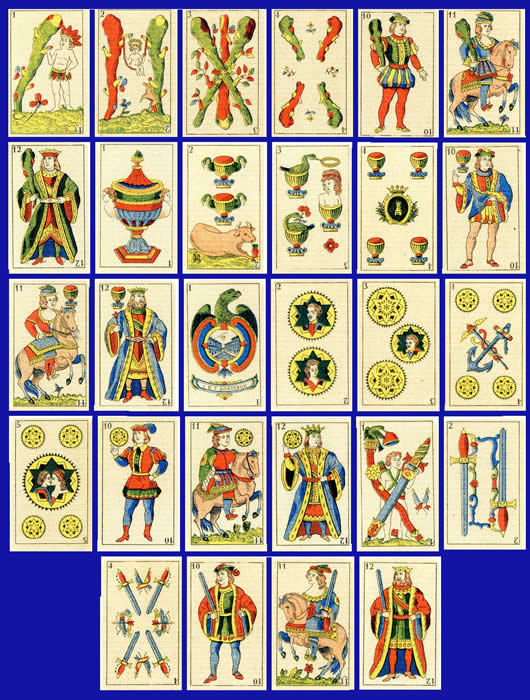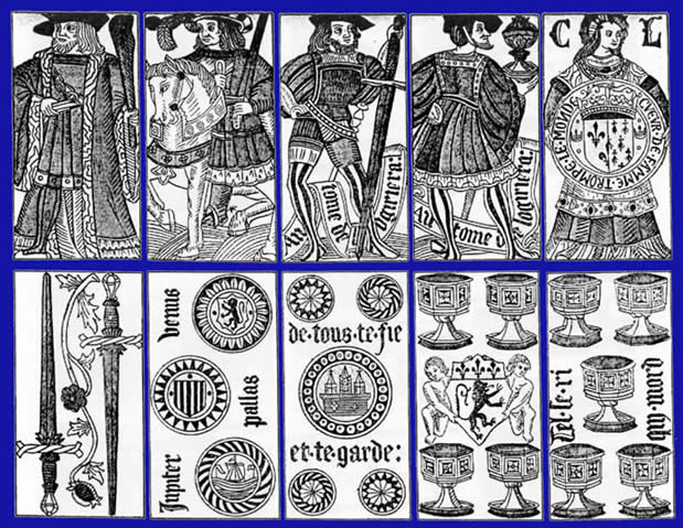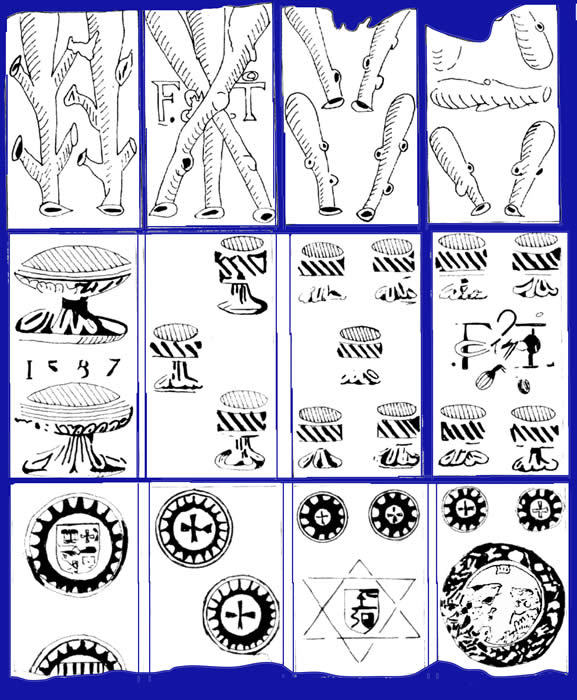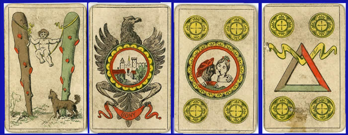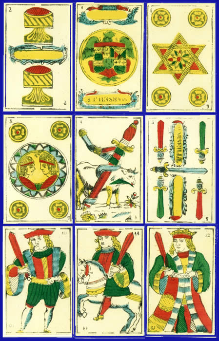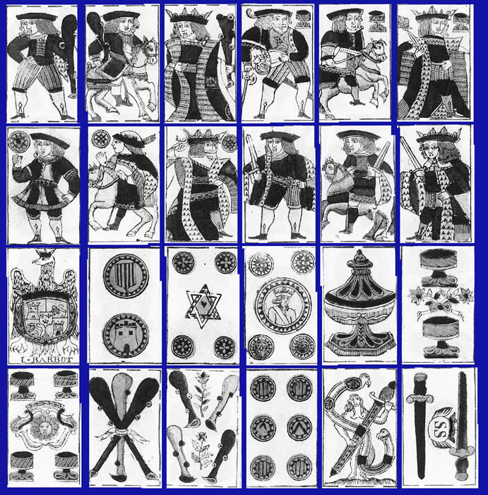 montre une « Vache », l’As d’Epée supporte les armes de France et de Navarre, l'As de Coupe est représenté par