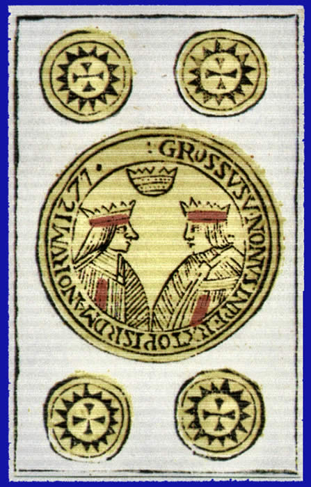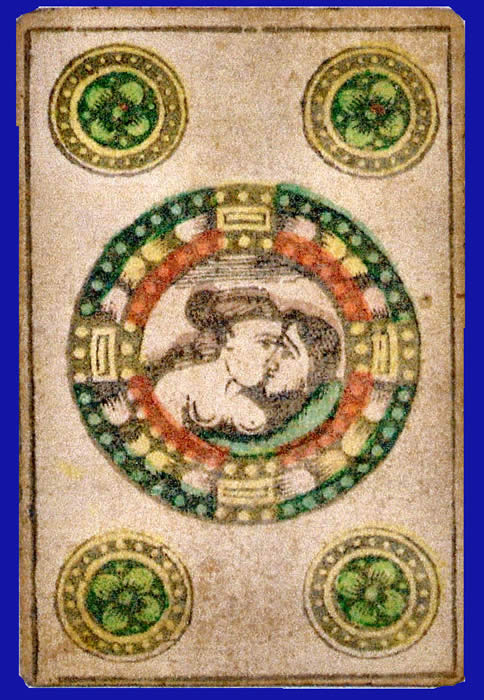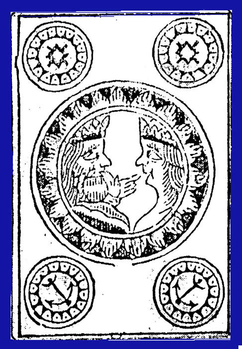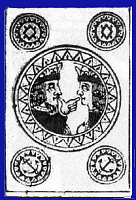 Observations : C’est le troisième portrait de ce cartier, nous en connaissons que 16 cartes. Le Deux de Denier nous