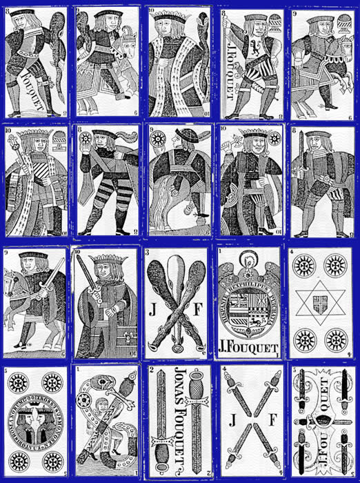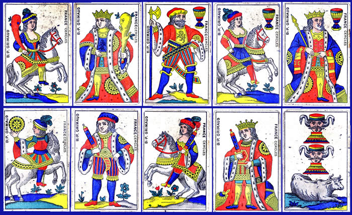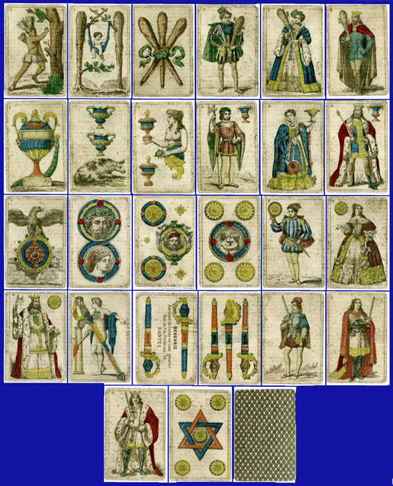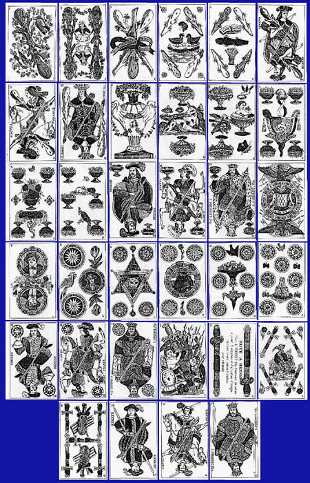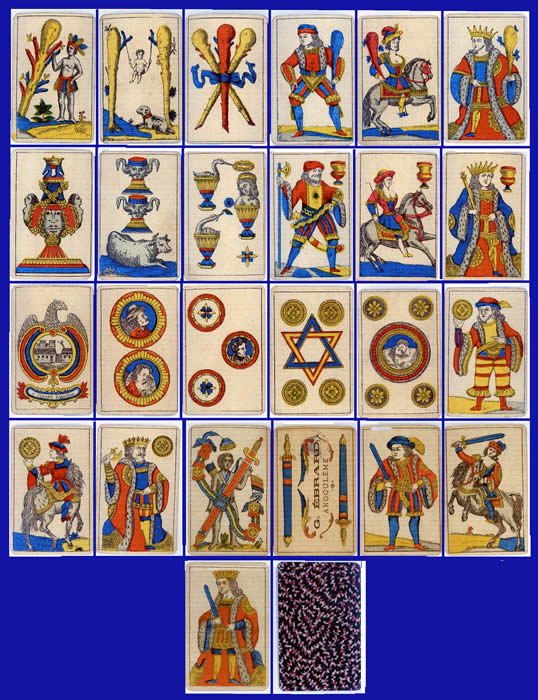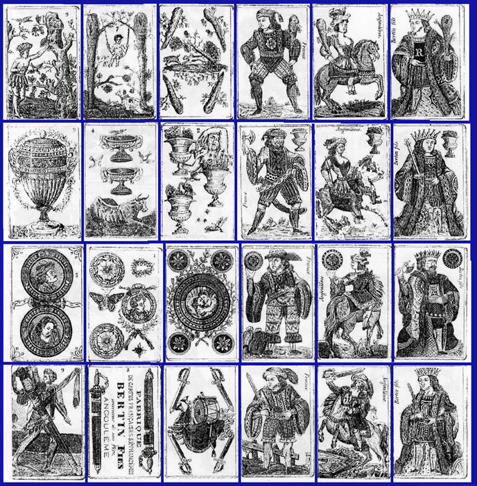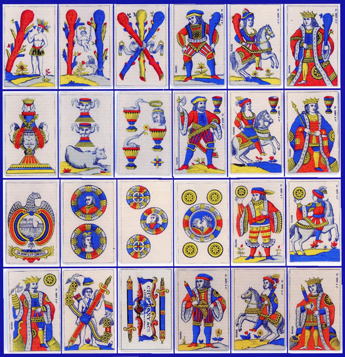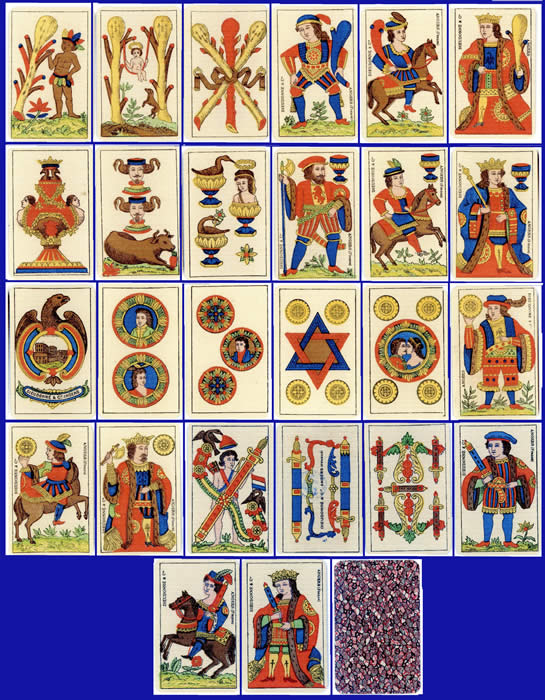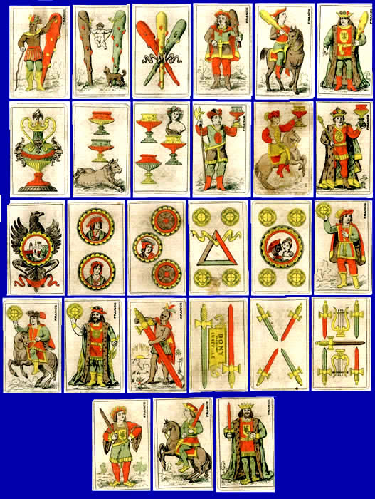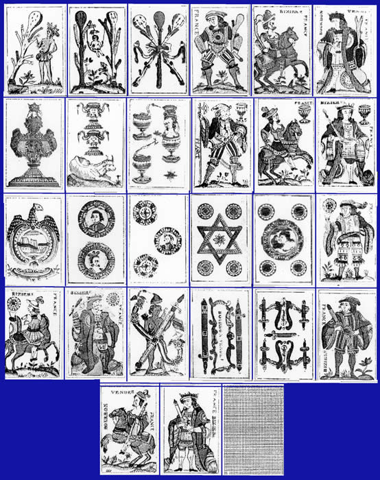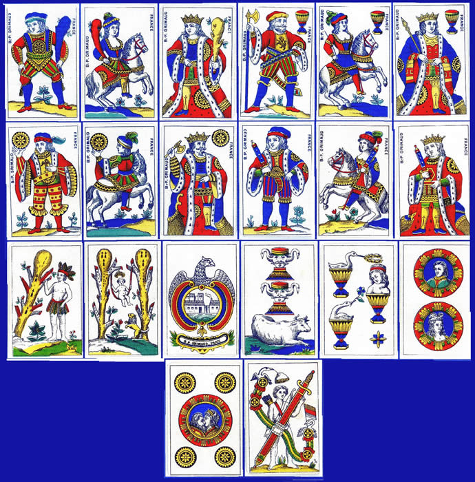 Observations: 48 cartes de 55x87mm. Les cartes à figure ressemblent à celles du 2e portrait B.P.GRIMAUD; Il