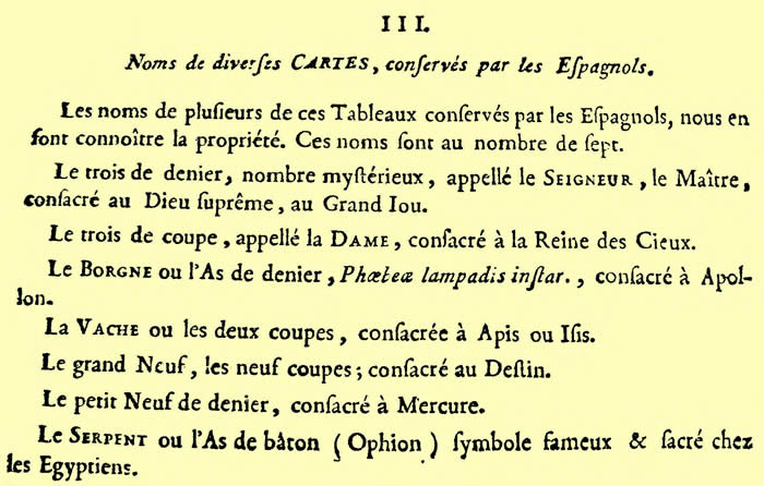 sur les Tarots , page 401, il donne le nom des différentes cartes dont