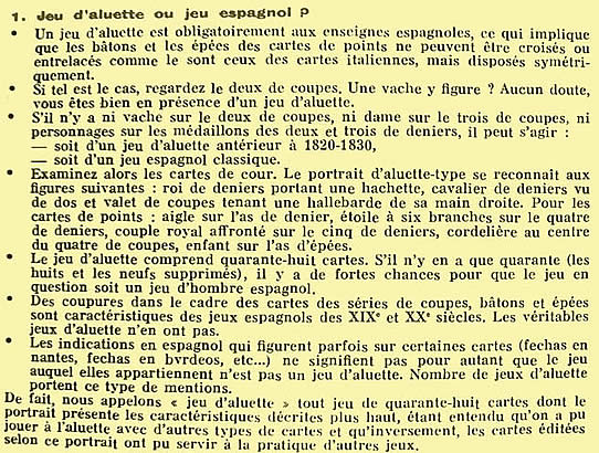 sur les cartes des signes à faire à son partenaire, nom des Luettes, numérotation des cartes.