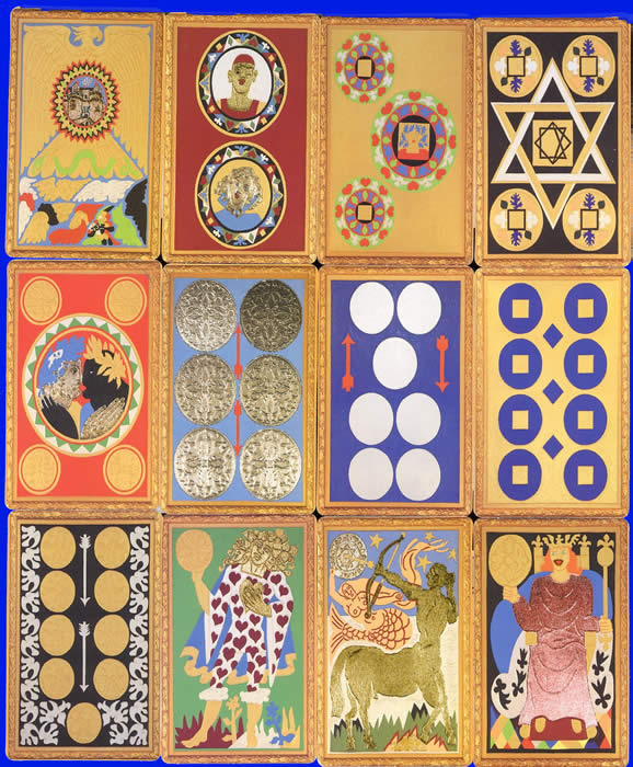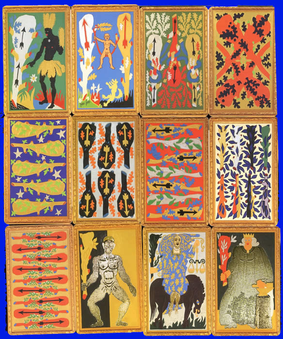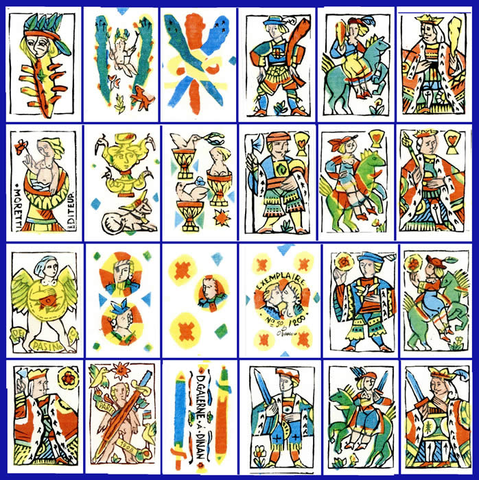 Observations: 48 cartes de 55x85mm. Création d'un jeu d'Aluette par un artiste parisien en 1998. Ce graphisme